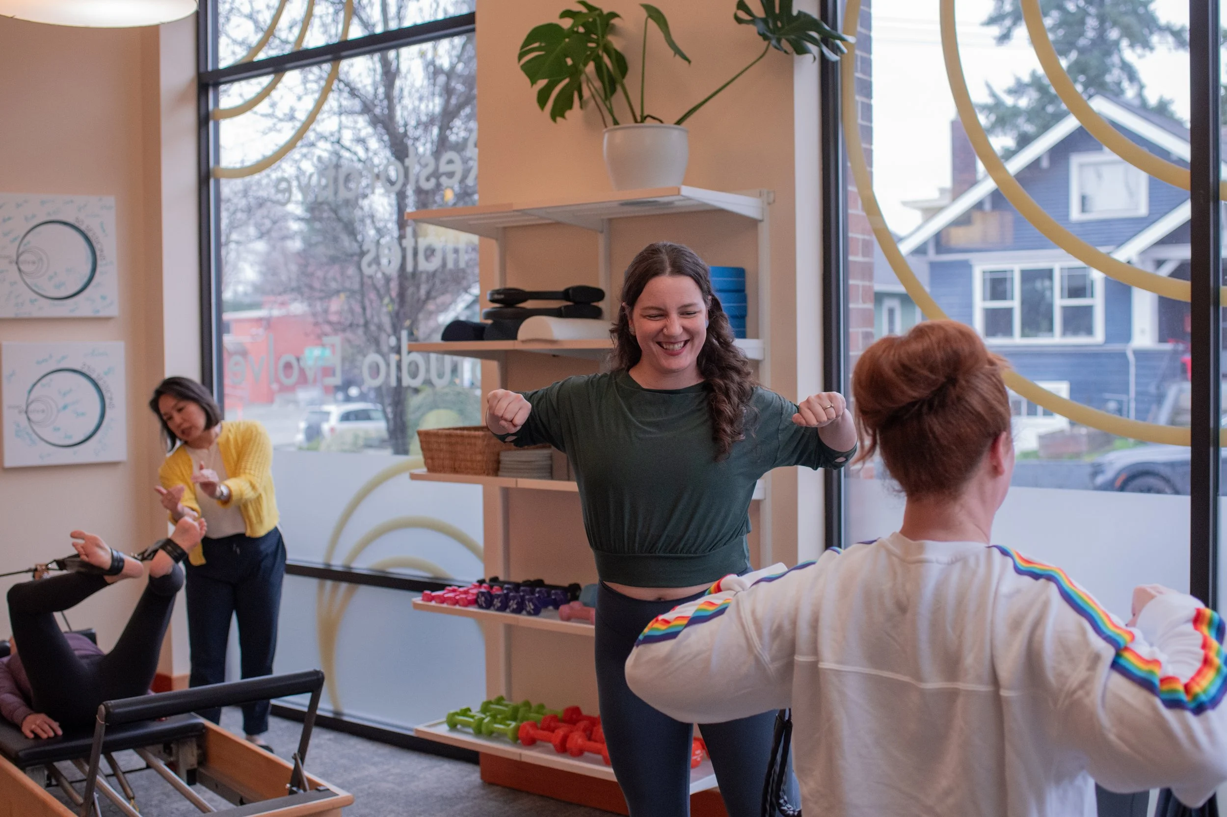 Questions and conversations are welcome. Clear, direct, and respectful communication is what I expect and am met with. The owner, Martine, truly cares about her employees. The culture at Studio Evolve is open, friendly, fun, professional, compassionate, inclusive, and body positive!”